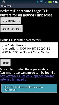 Open source network buffering solution. It will increase with immediate effect the buffer sizes for WiFi and 3G to those used by the 4G LTE link. It basically changes the properties for 'wifi' and 'default' profiles to match those of the 'lte' profile. A button to roll back to the default settings is also available.