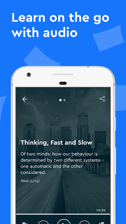 Bestselling nonfiction books summarized in 15-minutes reads or listens. It's a great way to boost your knowledge in a short amount of time and in a simple manner. It's also great for self-development and professional improvement. Easily switching between audio listening or text reading modes is also possible.