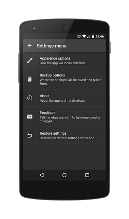 Saves backups of your phone locally, on the device. Moves the backups that are automatically stored in the smartphone's secure directory into the local storage so that they can be installed directly on the device without having to go through the PC first. Requires Android 4.2 or newer and only works on rooted phones.