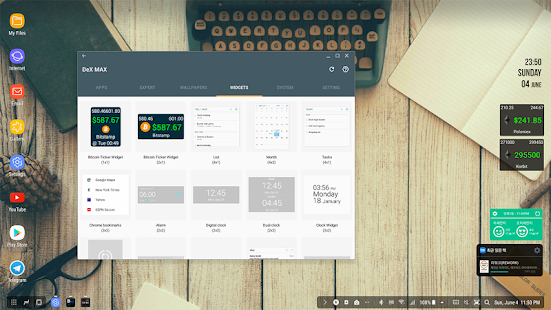 Extend the functionality of your SAMSUNG DeX. Change the size of the window using the Instant Modifying or Expert Tools modes. View your apps in Multi-Window mode. Set various wallpapers, place widgets, and customize configurations according to the state of DeX. Use the Immersive Mode to watch movies and play games in full screen and Night Mode to set a blue light filter.