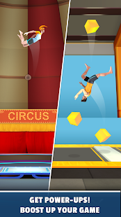 Perform various tricks while jumping on a trampoline and receive points. Master such tricks as frontflips, backflips, gainers, layouts, jumps, bounces and other. Select a character, customize it, and train your jumps in various locations, including backyard, gym, circus, park, etc.