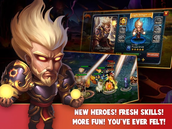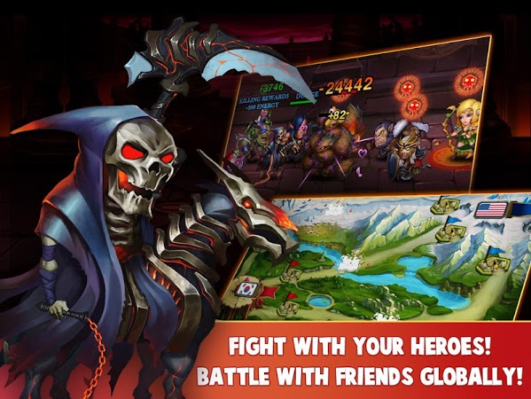 Play a multiplayer online RPG. Collect and train your heroes, join parties with teammates, improve your heroes and defeat the enemy in fast-paced fights. 50 unique and varied Heroes are available, and many skills to develop and upgrade, by assembling equipment and power-ups.