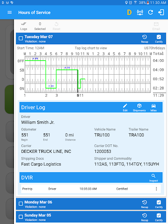 Monitor the service of your vehicles. Upload service orders and invoices per each service provided and access electronic driving and vehicle inspection logs from your Android device. Add notification reminders and filter log edit reports on the portal by consistent codes from a drop-down menu.