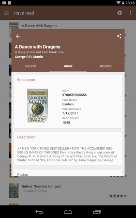 Manage your library at books.google.com. With this application, the phone's camera will be able to scan a barcode. Adding or removing books from the books.google.com shelves is also possible, as well as download PDFs of books licensed as public domain. No book reading capabilities are included.