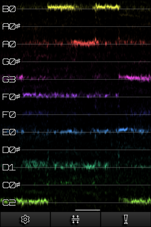 It's a guitar tuner with multiple visualization modes. It can combine a chromatic ribbon tuner view with various other string and note-based display types for accurate calibration. A stage tuner, chord matrix, and pitch spectrogram are also available. It can be used for various string instruments, not just guitars.