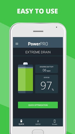 Optimizes your Android phone's or tablet's battery consumption. Checks background process, then automatically closes inactive applications that needlessly consume power and lessens the luminosity of the display to minimize the impact it has on your battery.