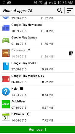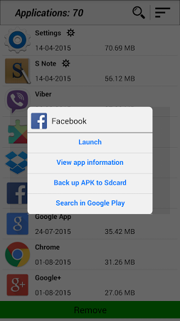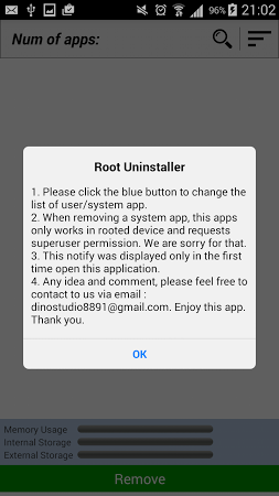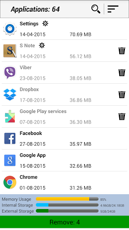 App uninstaller that also removes system apps on rooted devices. It will display all system and user apps and shows the user applications with the largest size. The application name, version, installation time and size are displayed for every installed app. A search function is also included.