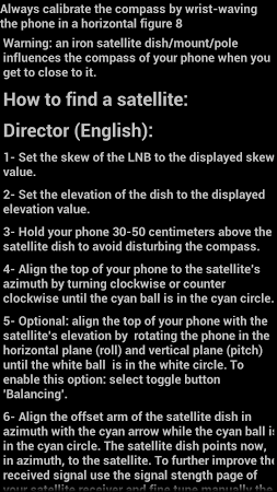 App for finding TV satellites and aligning satellite dishes.
