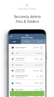 Remove sensitive data permanently. Erase your private information, including files, folders, photos, videos, text messages, call logs, and contacts. The deletion process complies with the European privacy legislation (GDPR). The app cleans temporary data and cache and overwrites the internal memory and SD card's free space.