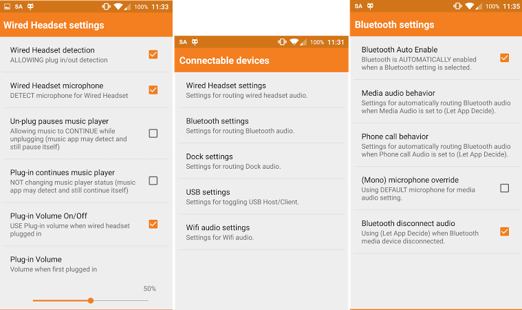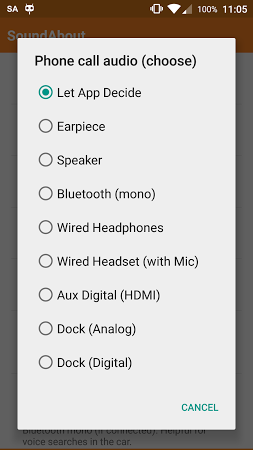 Route the media audio or the phone calls to various output choices. Routing to built-in speakers, wired headphones and headsets, earpieces, HDMI digital auxiliary, Bluetooth A2DP or mono, dock analog or digital, is possible. Caller ID announcements are supported as well.
