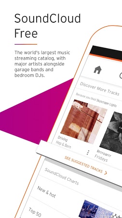 The official app of the SoundCloud music streaming platform. Using this app you gain access to hundreds of millions of songs, and you can listen to any of the available tracks right from your Android device. It also helps you discover new music and enjoy suitable suggestions, upload your songs, connect and interact with friends and artists, etc.